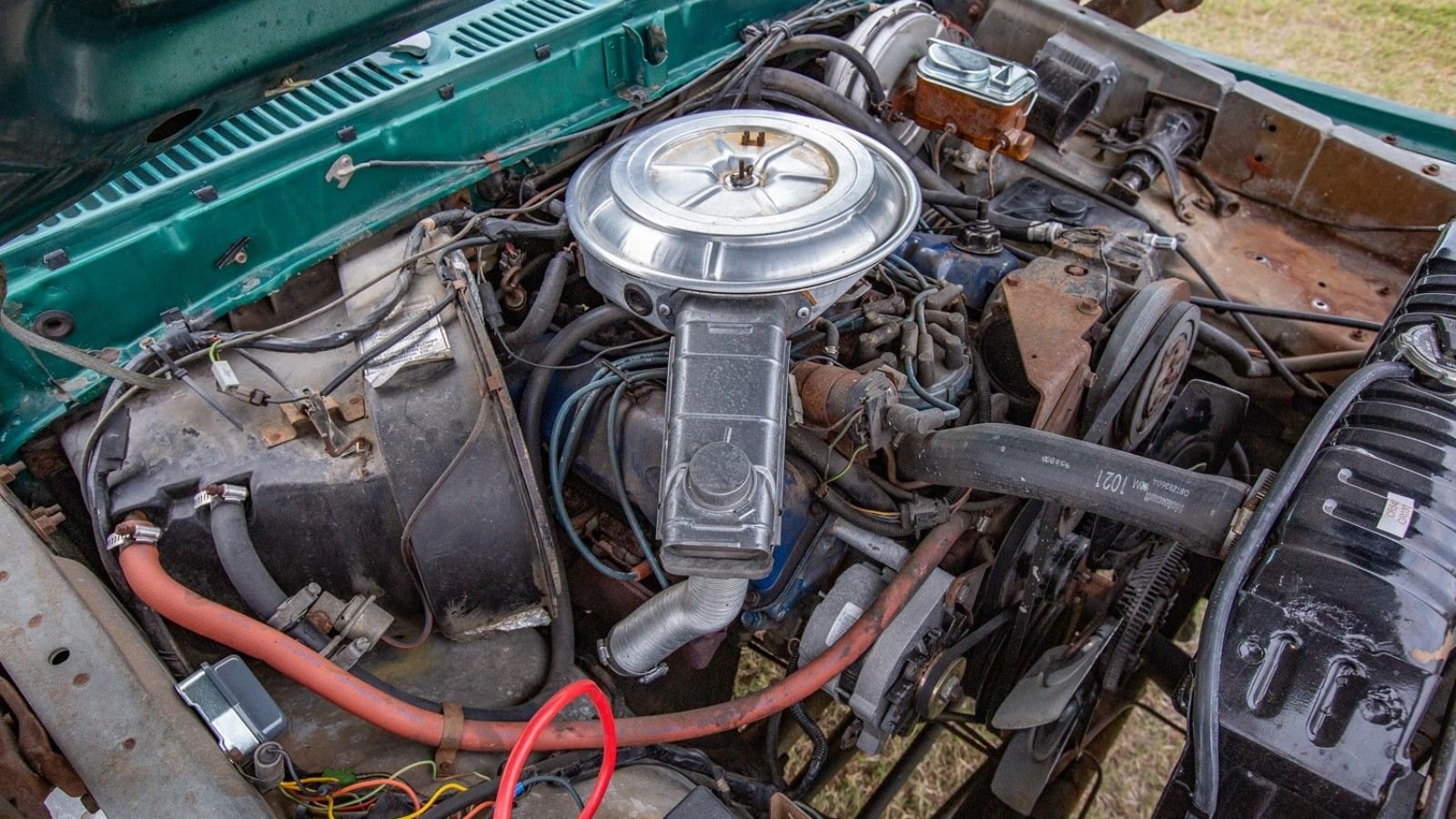 Pop the hood, and you'll find (you guessed it) the original 400 V8 engine. It's backed up by a sturdy C6 automatic transmission and supplemented by factory power steering. The engine bay does show a bit of age, with plenty of surface rust. But that's something you could easily fix up in a weekend with a wire brush and some paint.