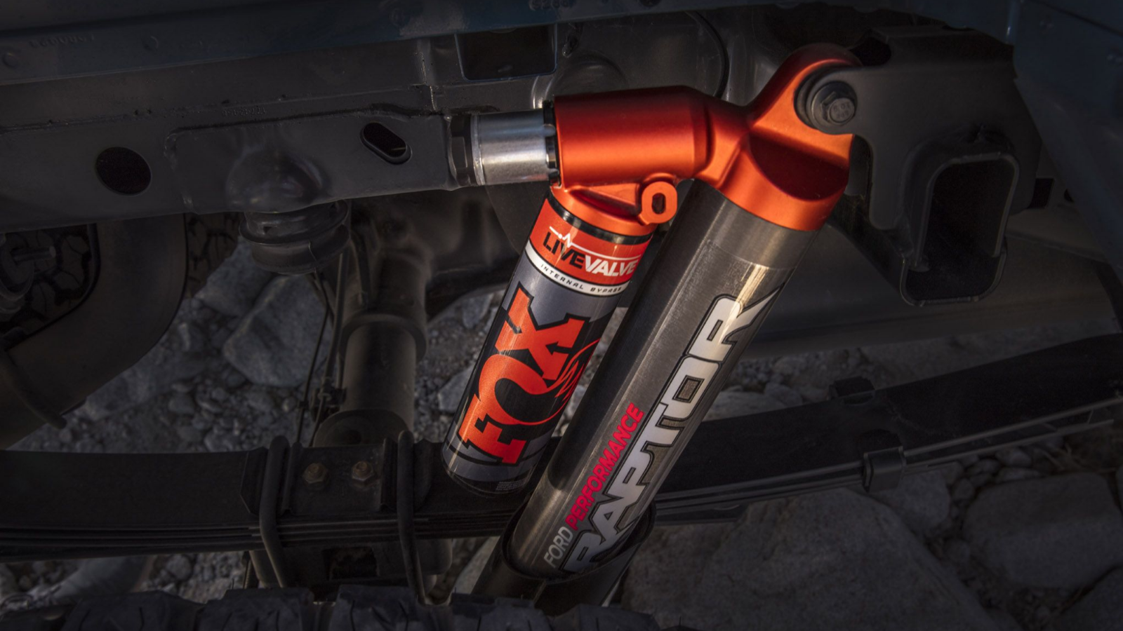 The first-generation Raptor featured 11.2 inch front and 12.1 inch of rear suspension Fox internal-bypass shock absorbers with progressive-rate springs. Upon being redesigned, Ford increased front suspension height to 13 inches, and 13.9 inches for the rear. New for 2019 is Ford's Live Valve technology featuring Fox 3.0 internal-bypass shock absorbers with remote reservoirs; which allow the Raptor to react in real-time to changing road conditions using continuously variable compression damping. The system works with Ford's Terrain Management System to maximize Raptor's off-road traction and stability control.