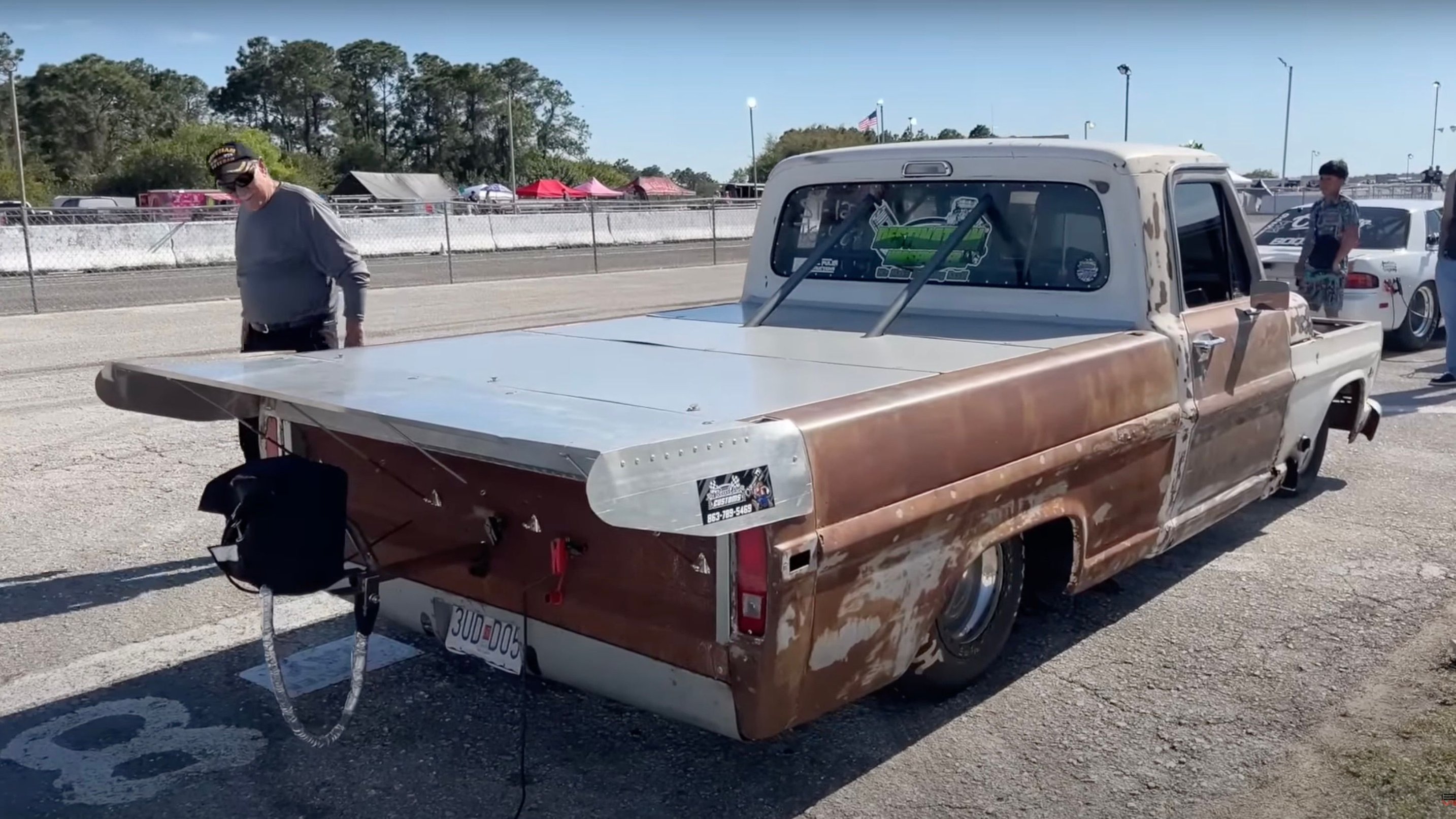 Nicknamed "Uncle Jesse" as a nod to the Dukes of Hazard, this vintage F-100 is still in the figuring-out stage, though it's already making some noise in no prep competition. In fact, on this particular night, it managed to take down a built S10 with no problem even though its owner had to pull a ton of power out of it to hook.