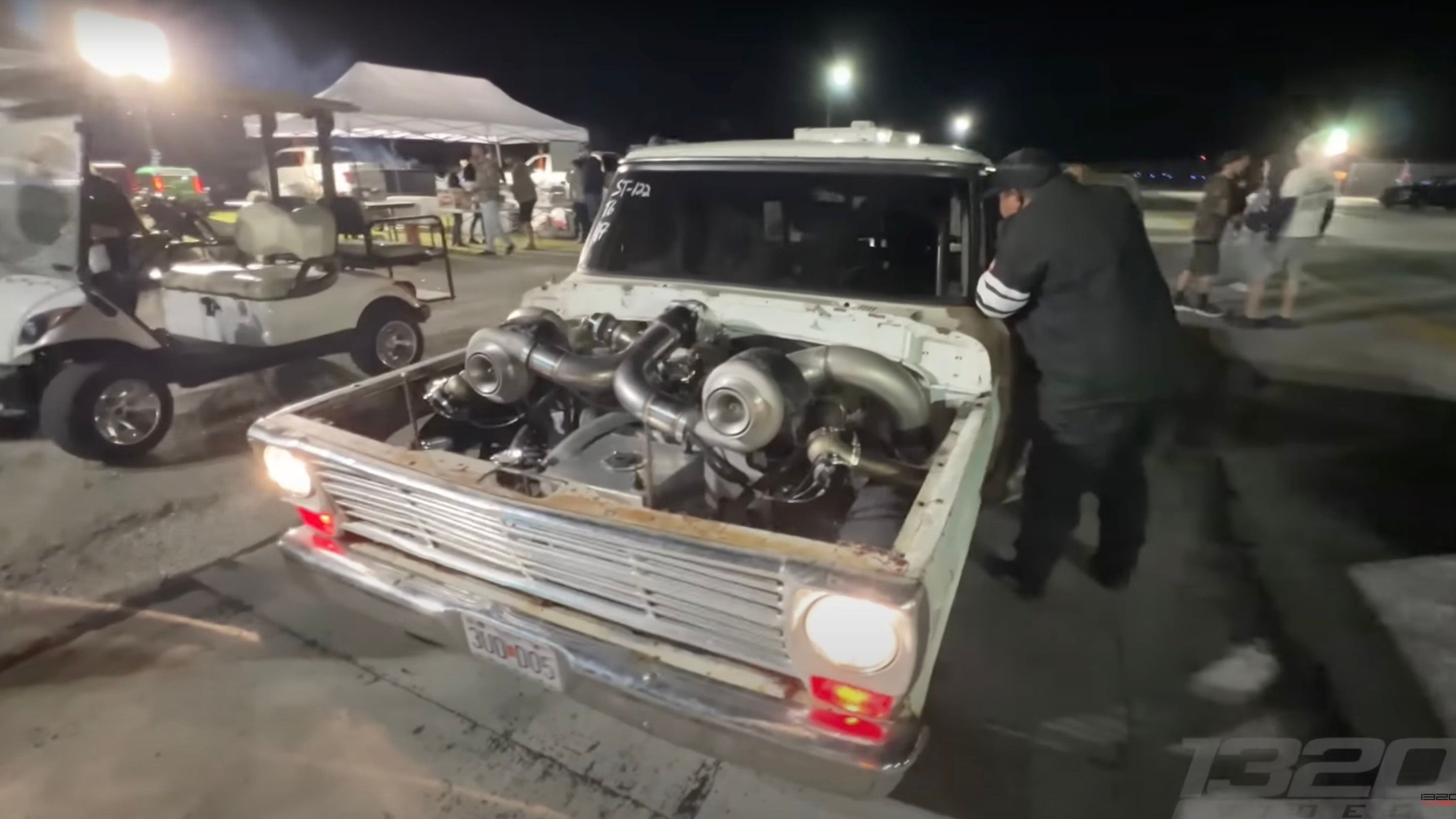 Once a bit taboo among drag racers, pickups have become incredibly popular platforms in recent years - largely thanks to advances in suspension technology. Gone are the days when one simply couldn't make a pickup hook, as we routinely come across some seriously quick examples of those utilitarian vehicles at the track. The latest - and certainly coolest - is this, a twin turbocharged 1971 Ford F-100 recently featured in a clip from 1320 Video.