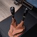 While the 6-speed auto is shifted on the Ididit column, the transfer case sticks are billet and wrapped in the same premium leather.