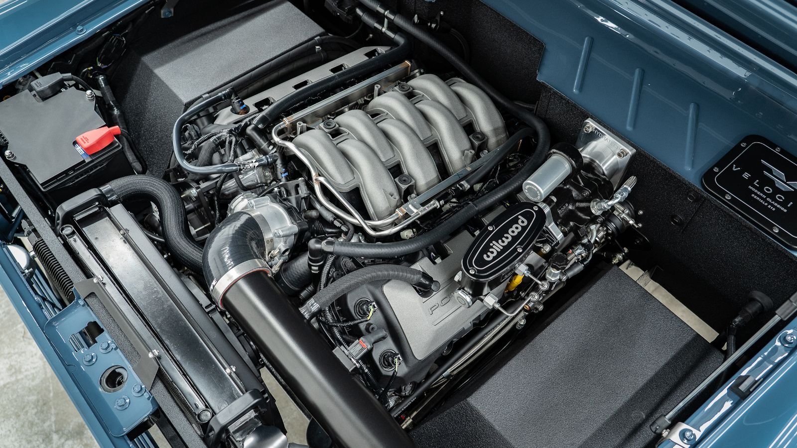 Like its modular ancestors, the Coyote is a physically tall and wide V8 engine. Hydroboost brakes not only look great, but they also have better stopping power than any vacuum booster. Velocity made their own headers and serpentine drive because this is the first comprehensive Coyote-powered Bronco.