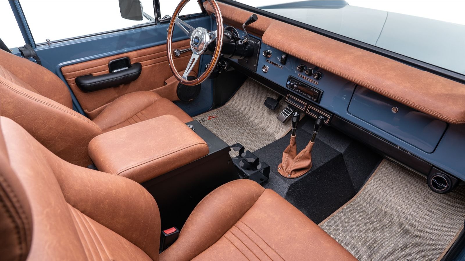 This stunning build by Velocity Restorations spares no expense. Tasteful upgrades like audio and leather pale in comparison to the late-model Coyote 5-liter. Also onboard is an automatic coupled to an Atlas transfer case. Everything you could ask for!