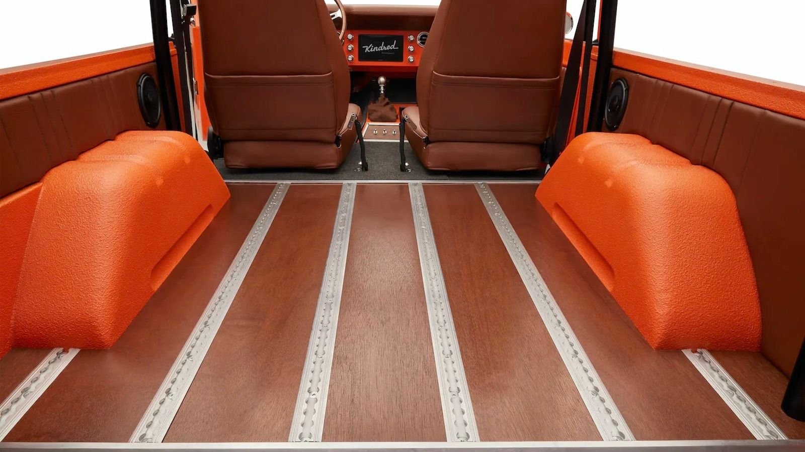 As is the case with most Bronco restomods, Kindred modernizes the old SUV in a variety of ways, taking a 1966-1975 model and treating it to immaculate bodywork, fresh paint, and a set of 17-inch forged aluminum wheels on the outside, which are wrapped with 33-inch BFGoodrich All-Terrain tires.