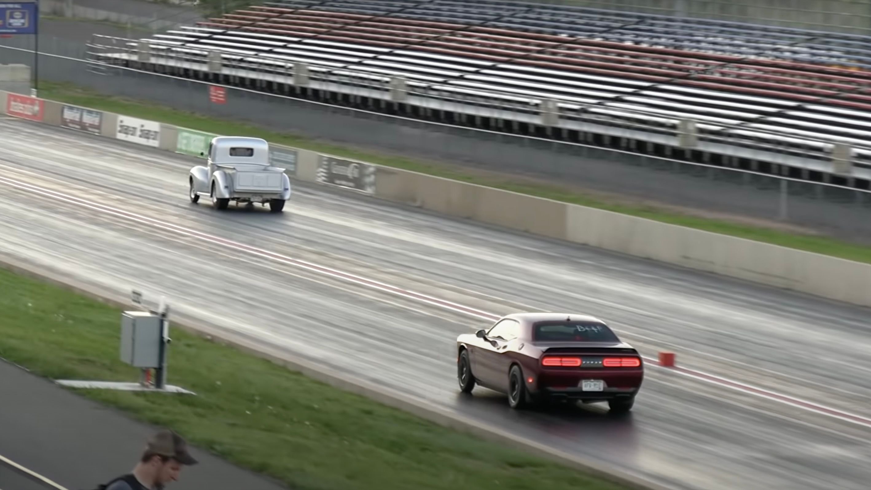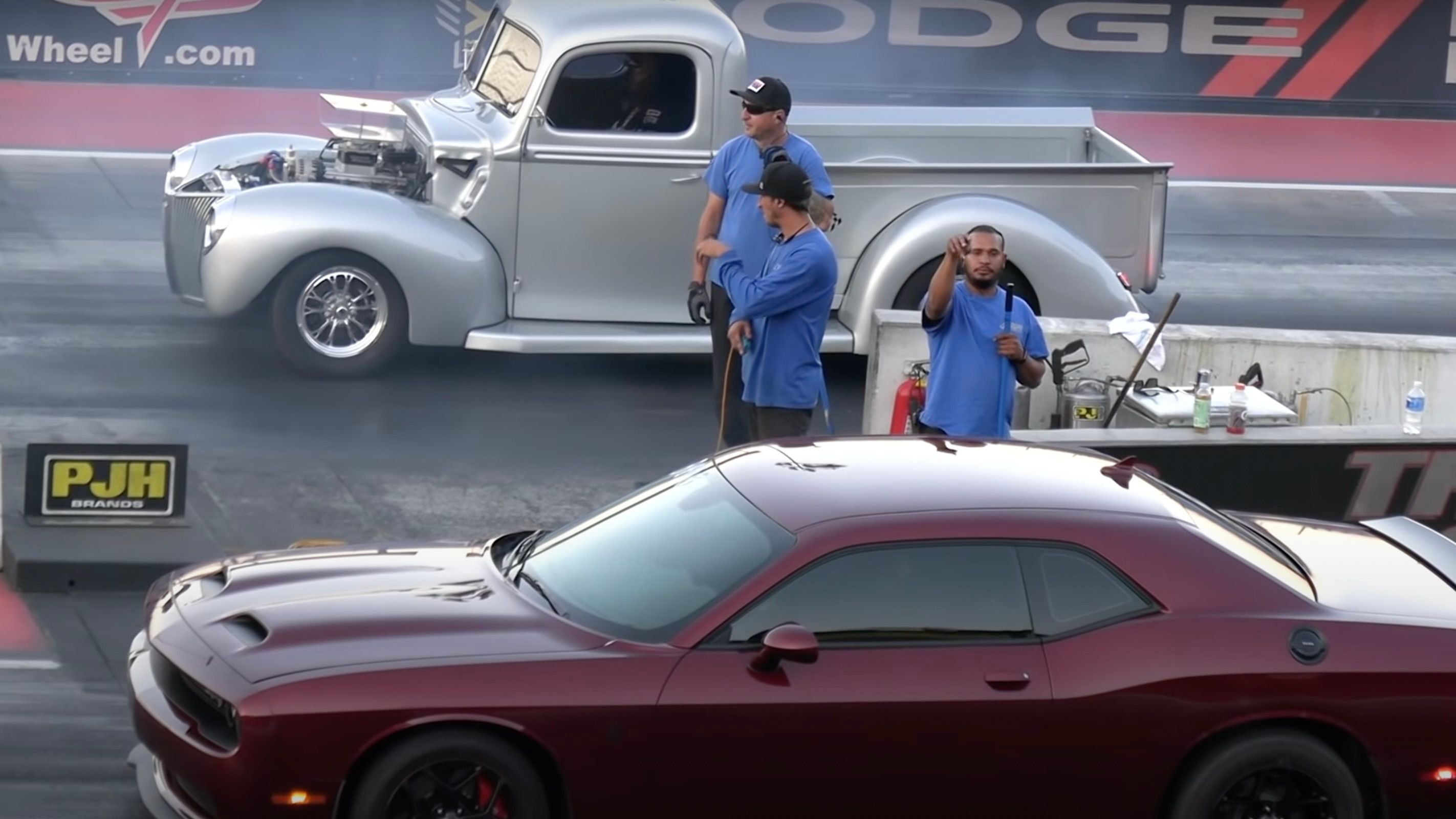 Vintage Ford Pickup Takes Down Challenger Hellcat In Drag Race