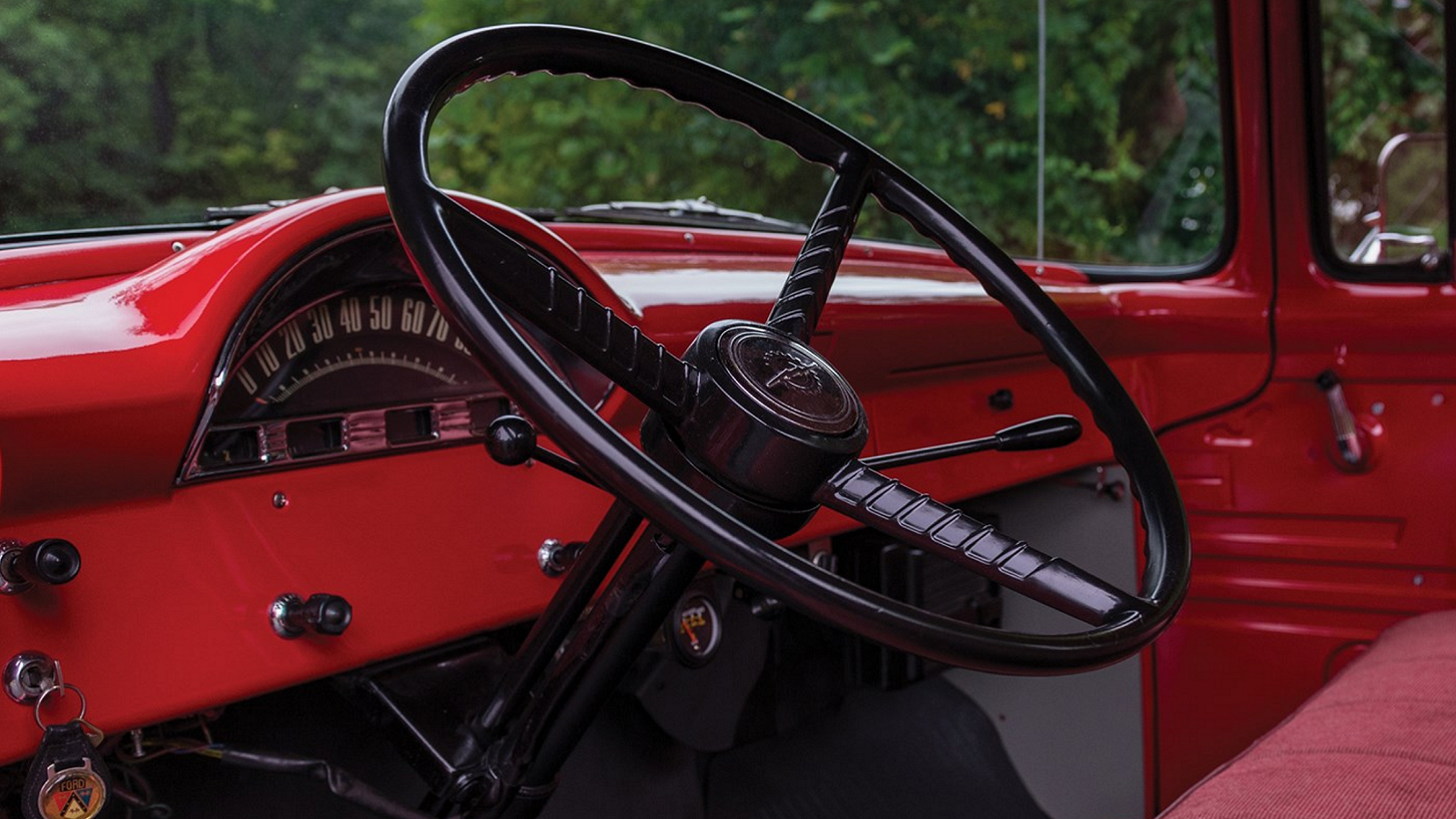 Like the engine bay and exterior, this restoration left no stone unturned inside, either. The standard bench seat, basic dash, and large steering wheel are all in immaculate condition. And there's even a heater to knock off the chills of winter.