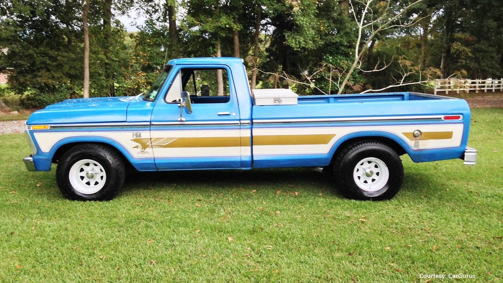 The 1970's were chock full of weird and wild special edition trucks in a decade known for interesting fashion choices. Among the most garish was the 1976 Bicentennial Edition F-Series, available in either Wimbledon White or Bahama Blue. What made the truck so wild was the golden stripe running down the side of the truck, a trail left by the eagle adorning the front fender and door. Perhaps even better is the special plaid upholstery done up in red, white, and blue.