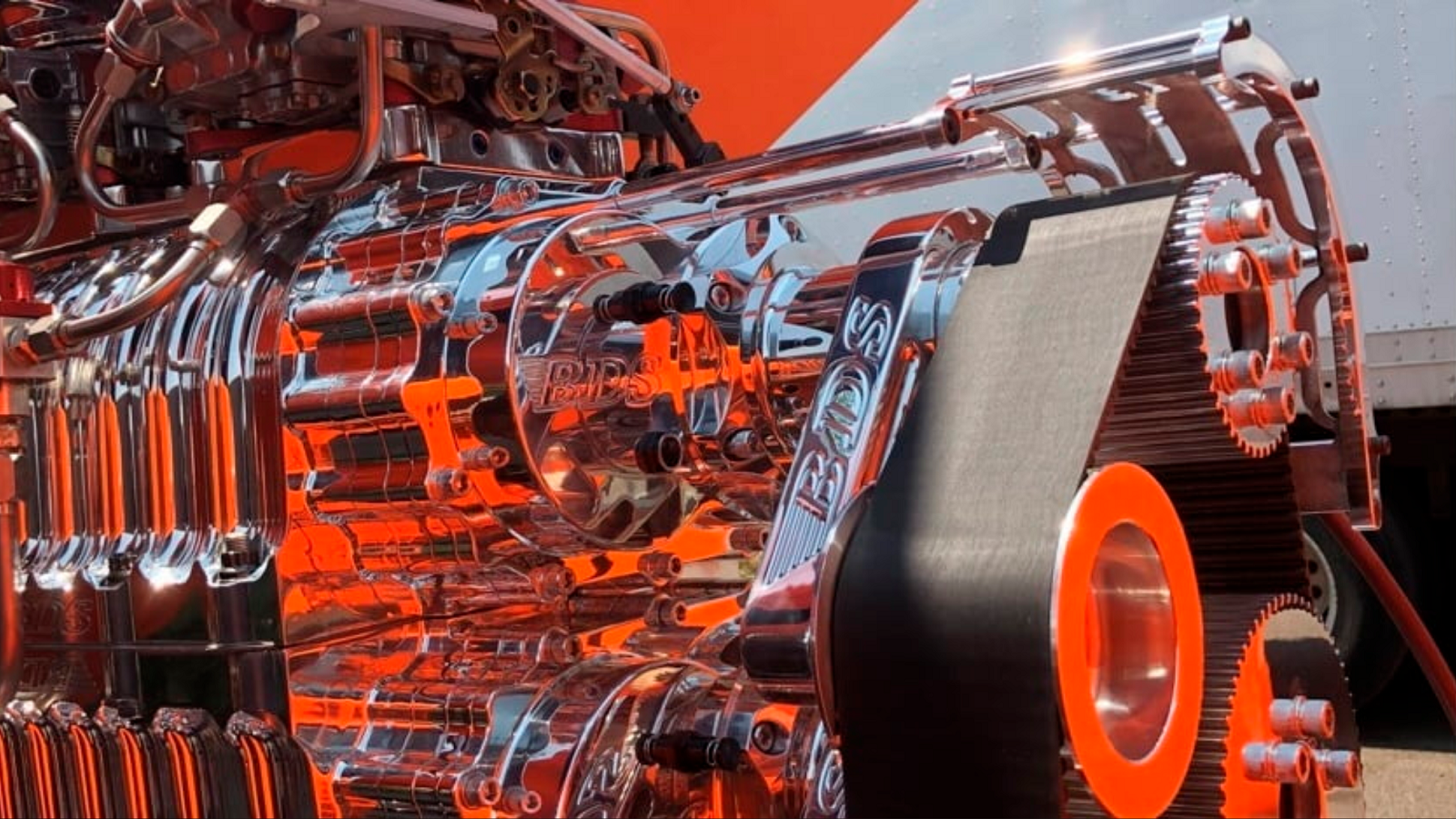It's the kind of thing you might see on a '50s or '60s era custom, and it's every bit as ridiculous as you might think. But hey, nobody ever said having an engine taller than the average adult was really a bad thing, right?
