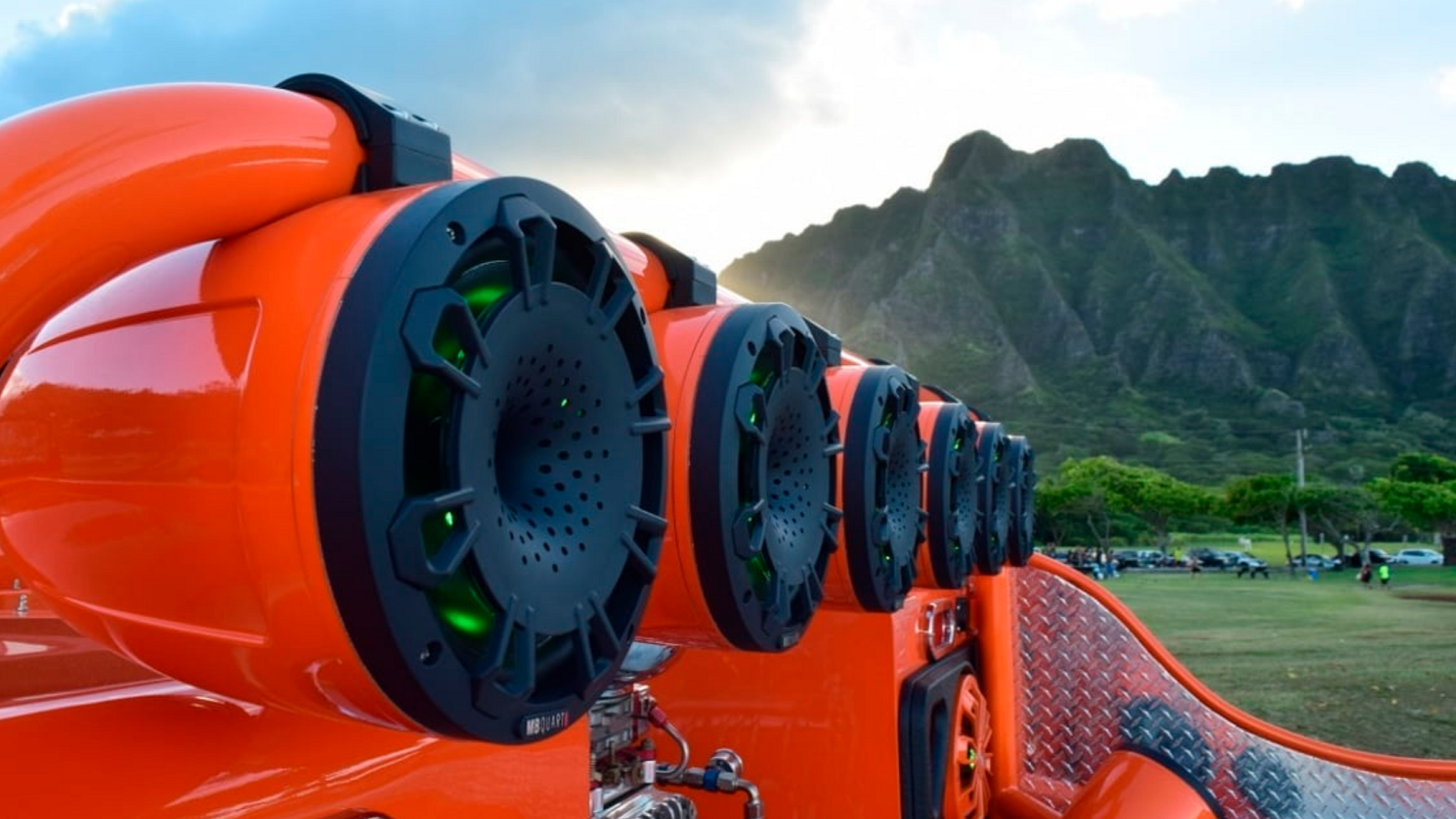 The bed of this hauler is obviously quite functional, but it's also adorned with lots of cool bits. Those mods include a massive stereo system guaranteed to keep you entertained while you're loading or unloading your two-wheeled cargo.