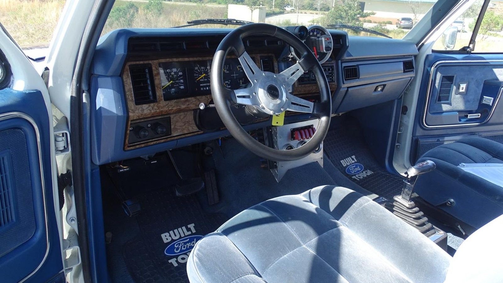 The blue interior is in fantastic condition, much like the rest of the Bronco. No word on whether the upholstery is new or original, but either way, it doesn't get much cleaner. Interestingly, somebody threw a GM TH400 transmission in this beast, but the rest of the drivetrain is all Ford.