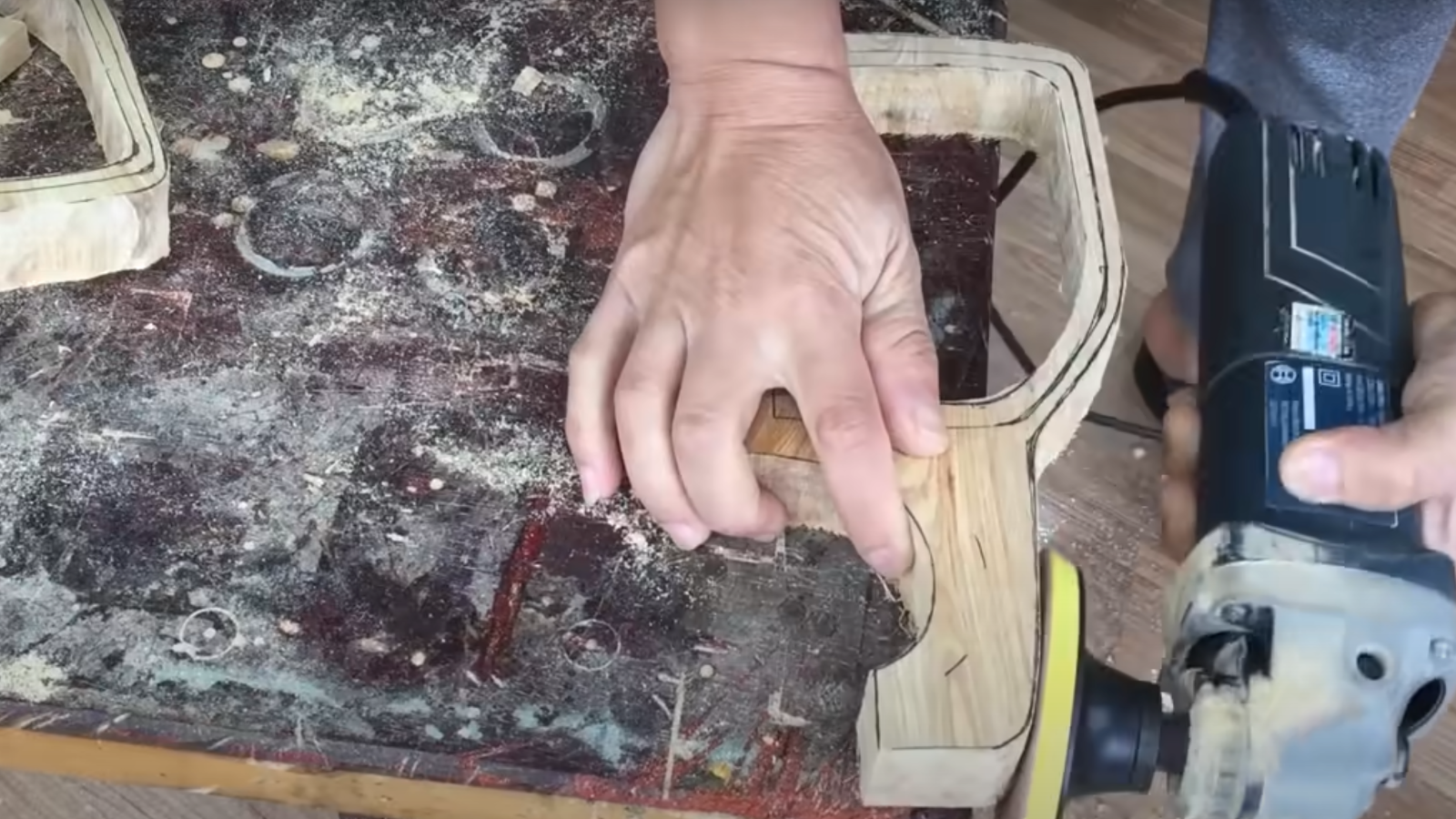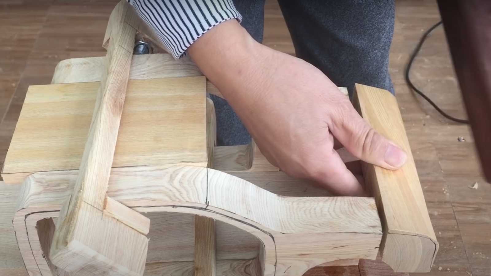 One of the coolest things about Woodworking Art is that he doesn't try to hide his techniques from the masses. Rather, he shows the entire process he goes through to create these cool car models, step by step. That's also the case with this Raptor creation, as he starts out with a few pieces of wood and begins drawing out its basic shape before turning on the band saw.